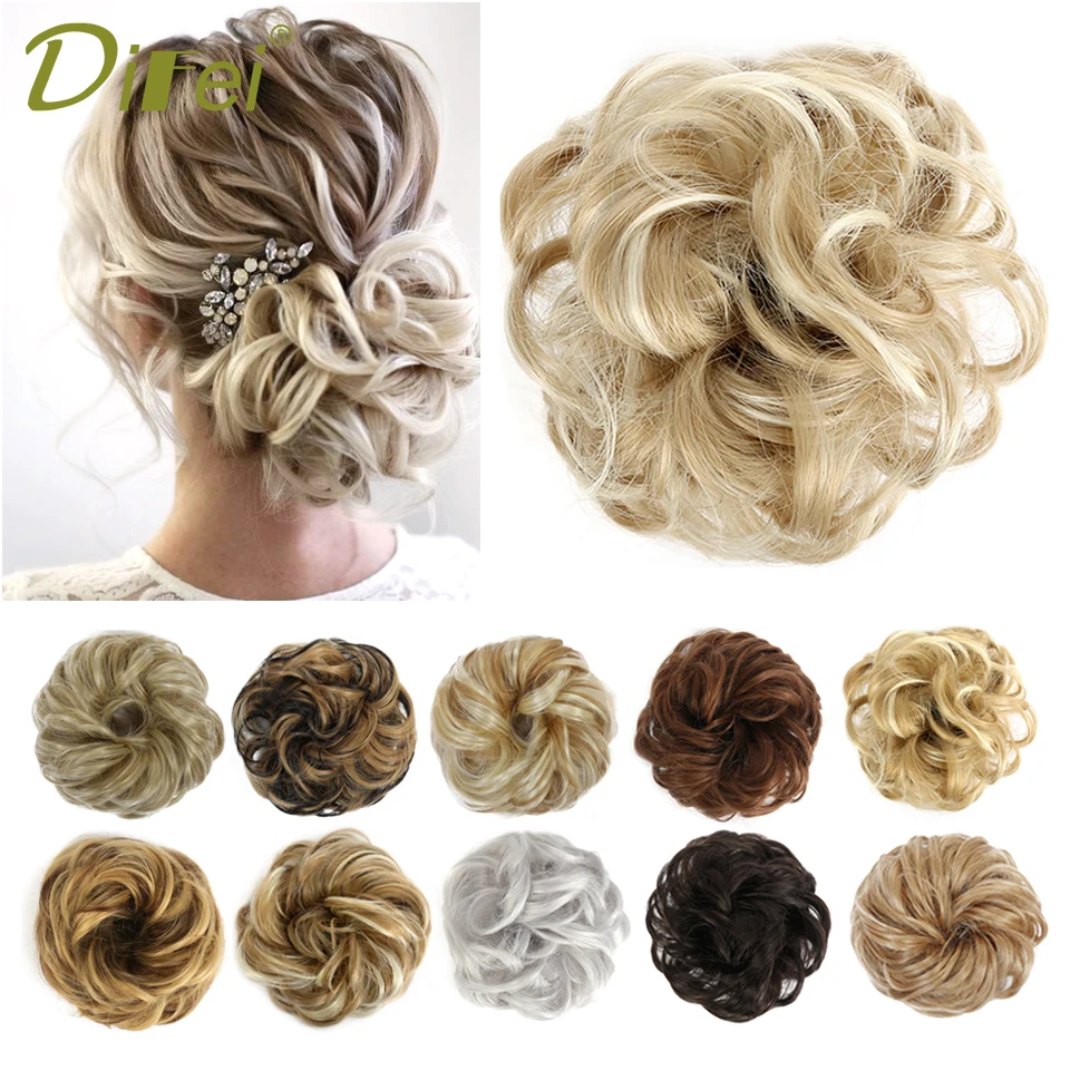 Name: DIFEI-Cinta de pelo rizado para mujer, moño de pelo de Donut, almohadilla de goma elástica para el pelo, banda de goma sintética, extensiones de cabello marrón y dorado