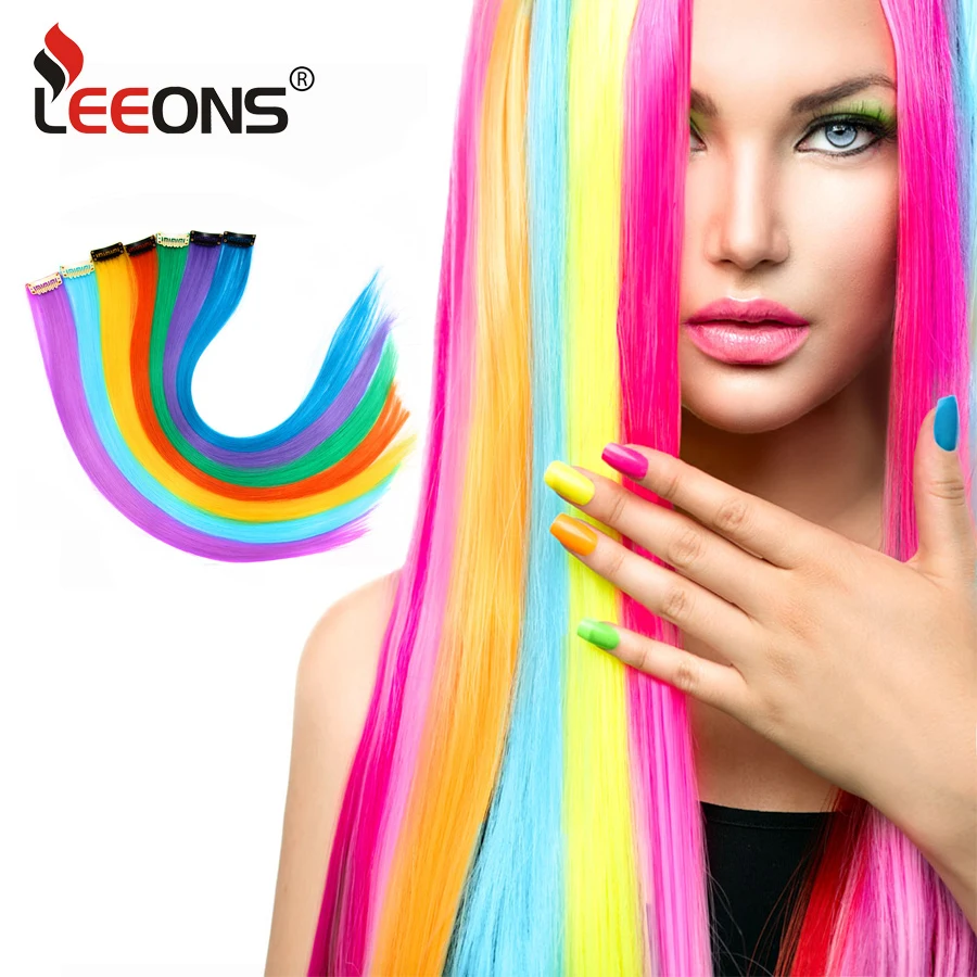 Name: Leeons-extensiones de cabello sintético con Clip, extensiones de cabello resistentes al calor, pelo arcoíris para niños y mujeres, estilo ondulado de 20 pulgadas