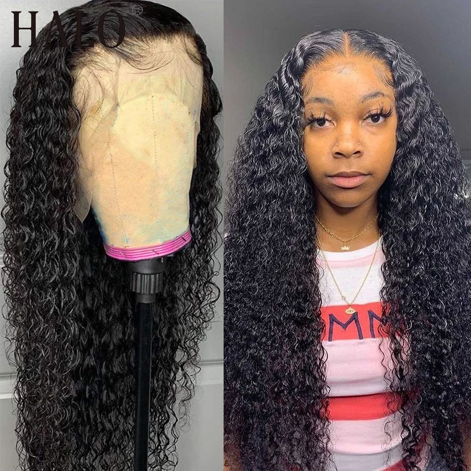 Mejor Pelucas de encaje de halo Official Store por Pelucas de cabello humano brasileño para mujeres negras, 28, 30, 40 pulgadas, barato, con encaje Frontal 13x4, rizado, sin pegamento, Remy