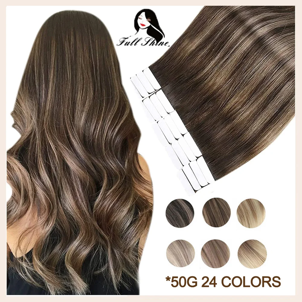 Mejor Extensiones de pelo de Full Shine Official Store por Cinta de cabello humano Natural para mujer, cabello humano Remy Real, trama de piel recta, Balayage Invisible sin costuras, brillo completo
