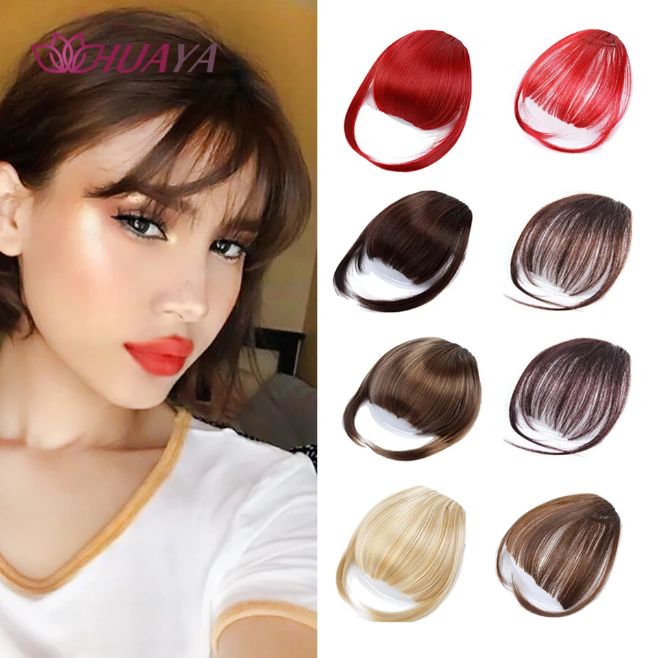 Name: HUAYA, flequillo para mujer, Clip en extensiones de cabello, flequillo Natural, cabello sintético, negro, marrón, flequillo, Clips de cabello falso